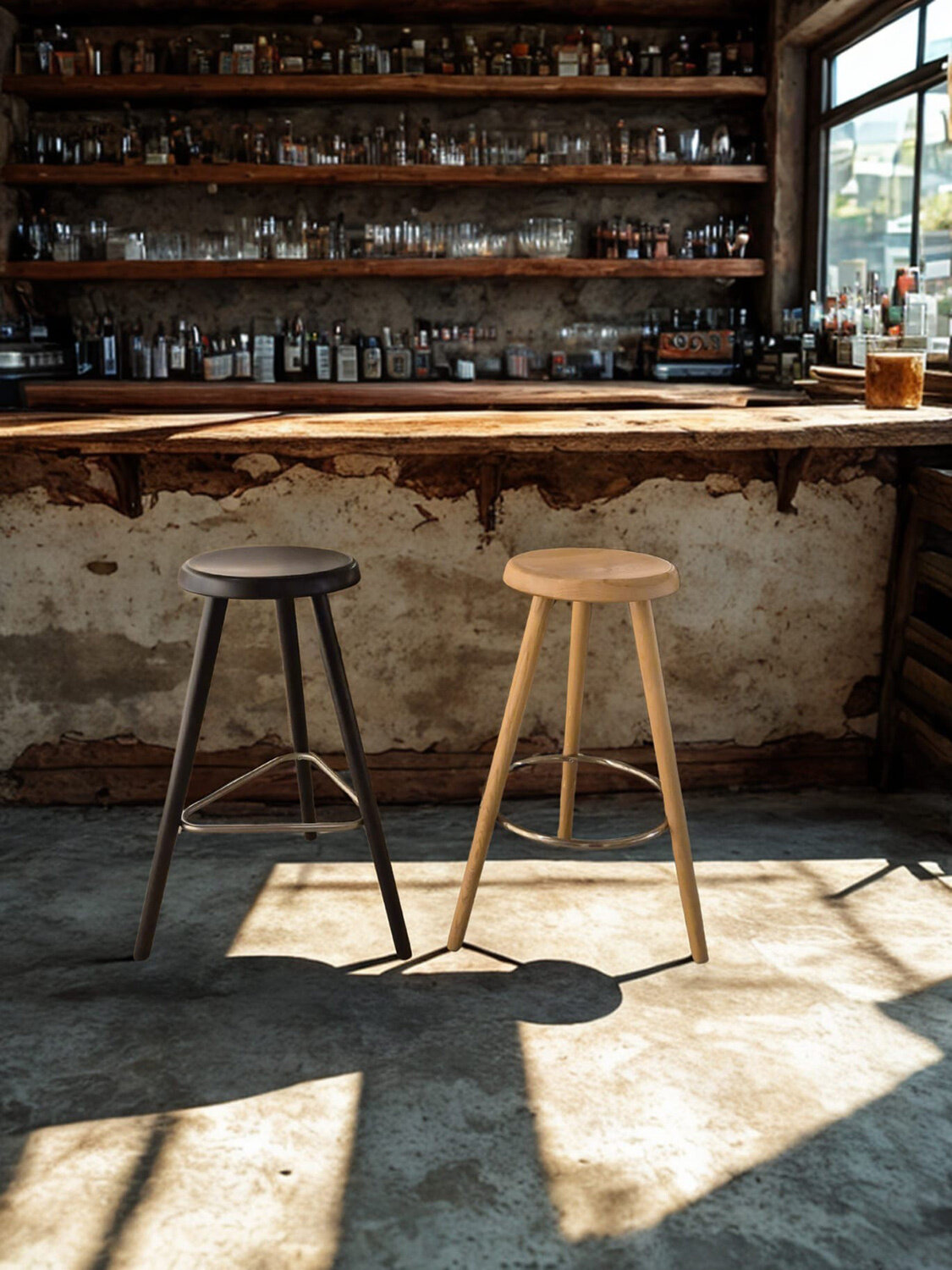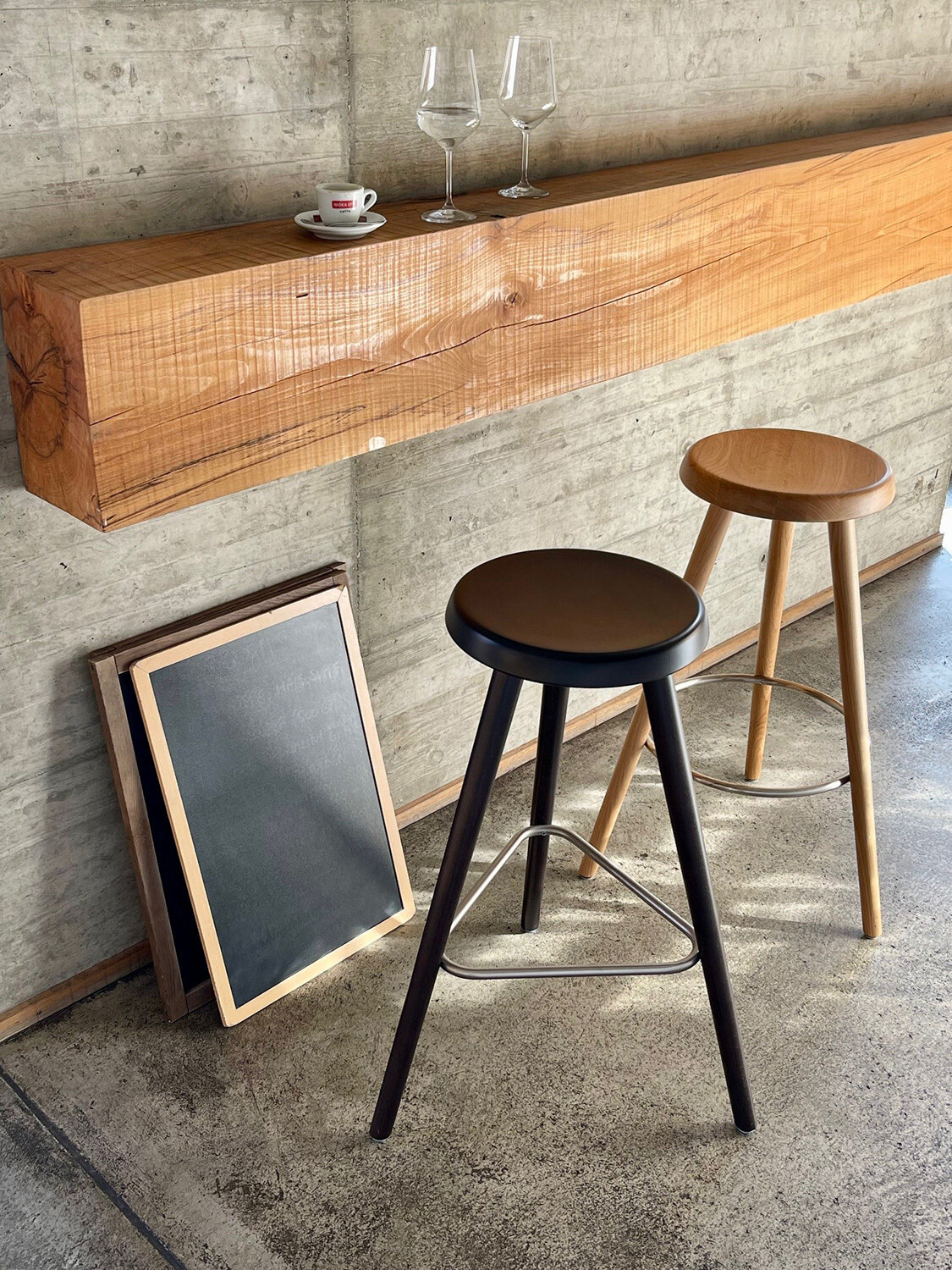 Ein Barhocker, vollständig aus Massivholz gefertigt, entwickelt und gestaltet in Zusammenarbeit mit Stephan Wenger. Mit minimalistischem Materialeinsatz entstand ein eleganter, funktionaler und hochwertiger Massivholzbarhocker, passenden zu bestehenden Produkten der Kollektion. Dank seines dreibeinigen Gestells steht er auch auf unebenen Böden stets stabil. Der wahlweise runde oder dreieckige Fussring aus gebürstetem Edelstahl dient nicht nur als komfortable Fussablage, sondern trägt wesentlich zur stabilen und langlebigen Konstruktion bei.